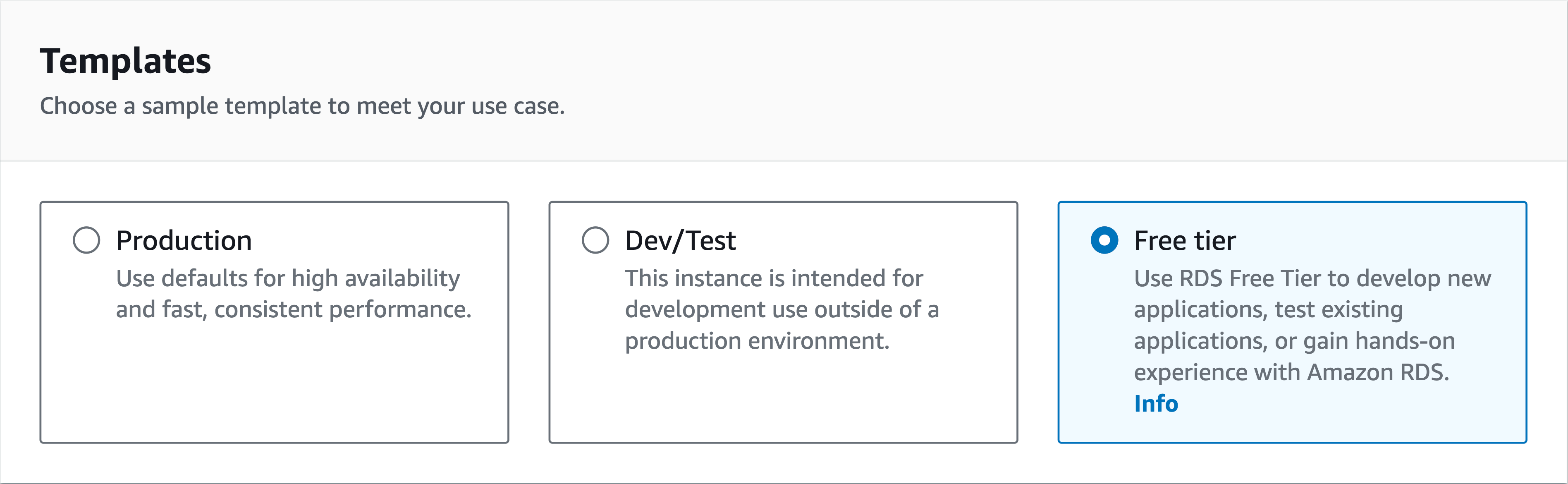 Next, since we're using the free tier, we need to select the template for the free tier: