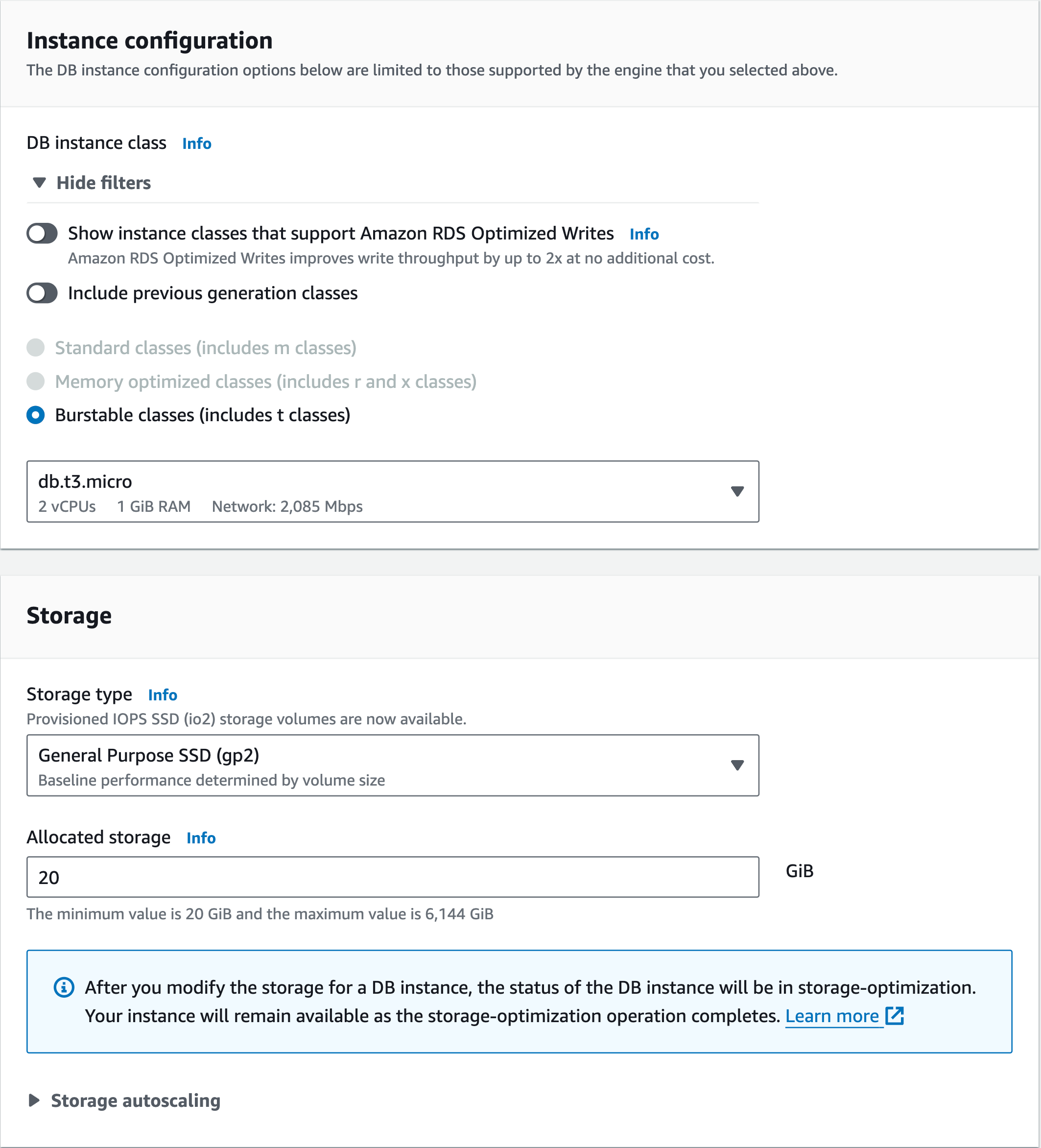 For the Instance configuration and Storage sections, we don't need to make any changes because the template automatically provides the required details for us. Since we're on the free tier, we're limited in resources and don't have much flexibility.