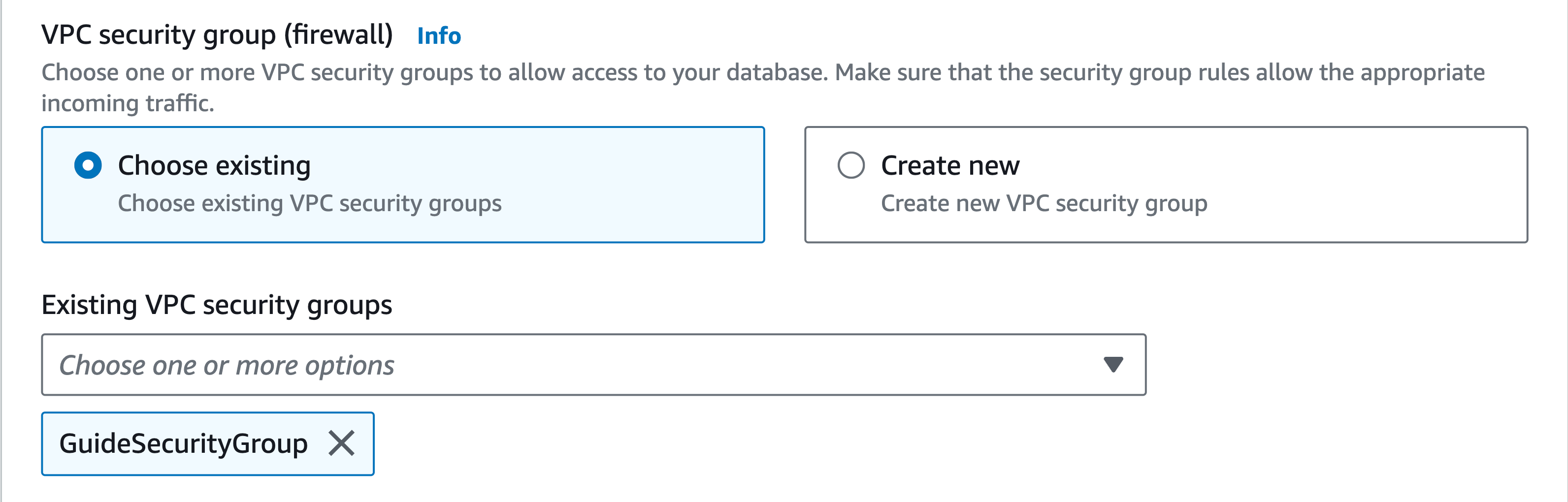 As we near the end, we select the security group that we created for our EC2 instance. After that, we'll also be updating this security group to suit our needs.