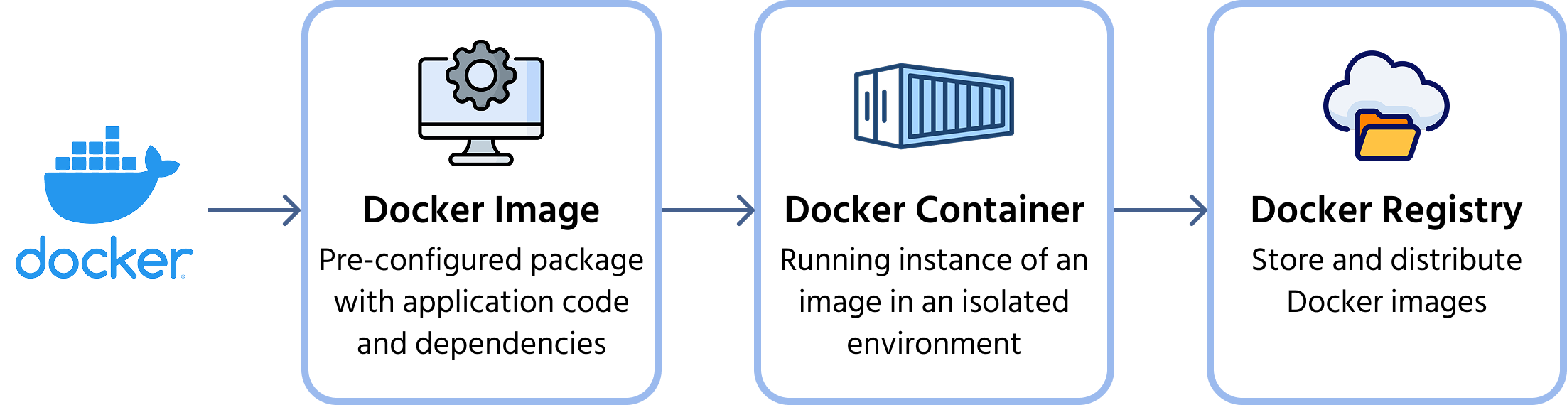 Docker semplifica il deployment del software utilizzando immagini, container e registry. Una immagine Docker confeziona un'applicazione con tutte le sue dipendenze per garantire coerenza tra gli ambienti. Quando viene eseguita, l'immagine diventa un container, un ambiente di runtime isolato e leggero. I registry Docker come Docker Hub permettono agli sviluppatori di archiviare, condividere e accedere a queste immagini, abilitando una distribuzione delle applicazioni veloce, scalabile e portatile.