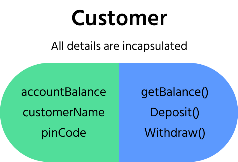 1234567891011121314151617181920212223242526272829303132public class Customer { private double accountBalance; private string customerName; private int pinCode; public Customer(double accountBalance, string customerName, int pinCode) { this.accountBalance = accountBalance; this.customerName = customerName; this.pinCode = pinCode; } public double getBalance(int pinCode) { if (pinCode == this.pinCode) return this.accountBalance; return } public void Deposit(double amount, int pinCode) { if(pinCode == this.pinCode) accountBalance += amount; } public void Withdraw(double amount, int pinCode) { if(pinCode == this.pinCode) accountBalance -= amount; } }